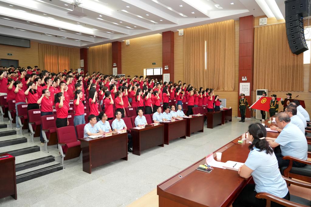 金融工程与现代技术学院团委副书记张静瑜带领全体志愿者面向团旗庄严宣誓,“尽己所能,帮助他人”的口号声响彻整个报告厅,让在场每个人都深受鼓舞。