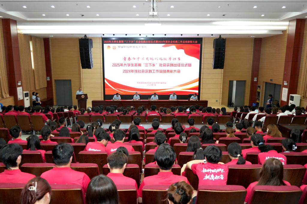 7月3日下午,我校2025年大学生暑期“三下乡”社会实践出征仪式暨2024年度社会实践工作总结表彰大会在学术报告厅举行。党委书记高玉峰,校长程书强,党委副书记朱华斌,副校长王勇,党委委员、宣传部部长严丽丽出席仪式。学生工作处处长、各二级学院党总支、党支部书记、马克思主义学院院长、各二级学院分团委书记、团组织负责人以及“三下乡”师生志愿者共计400余人参加。活动由团委办公室主任连静主持。