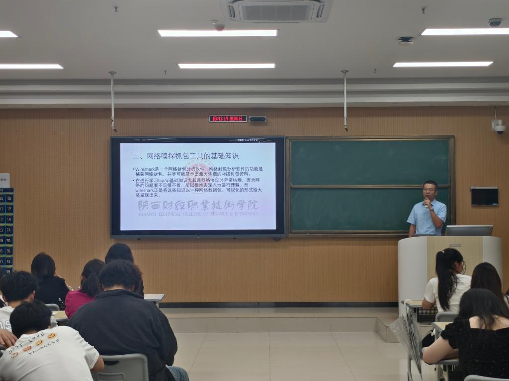 我校网络信息技术中心教师王经纬担任主讲,主讲题目是网络空间中所不被察觉的信息——初识网络嗅探抓包工具。王经纬通过一系列生动的案例,老师向学生们展示了网络诈骗、信息泄露、黑客攻击等网络安全问题的危害,使大家深刻认识到保护个人信息和网络安全的重要性。针对无线网络的特点,详细介绍了无线网络安全的防范措施。他强调了设置复杂密码、定期更换密码、不随意连接未知Wi-Fi等基本安全常识的重要性,并详细讲解了使用加密通信等高级安全技术的方法。