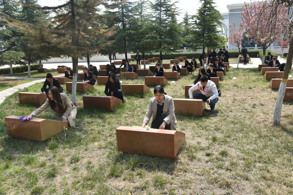 最后,全体师生来到墓区,认真擦拭每一块墓碑,仔细扫去每一抹灰尘,用实际行动表达对英烈的深切缅怀和无限哀思。